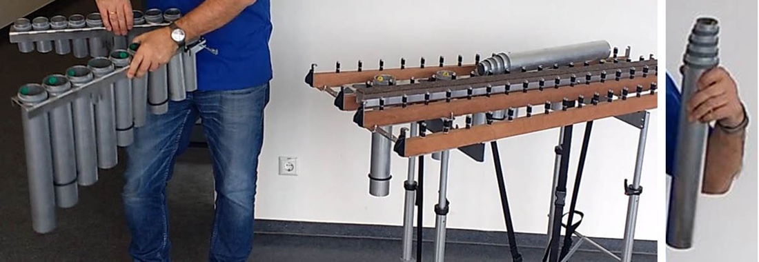 Für die üblichen starren "Panflöten"-Anordnungen werden faltbare und/oder ineinander steckbare (tube-in-tube) Resonanzrohrvarianten aus Aluminium, PVC oder als komplett 3D-gedruckte Resonanzrohre vorgestellt.Es wurde mit verschiedenen Varianten an Klappen experimentiert. Ausgehend von magnetisch montierbaren, geteilten Klappeneinheiten konnten mehrere Klappenvarianten entwickelt werden: