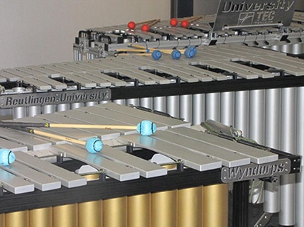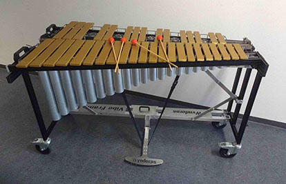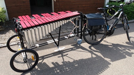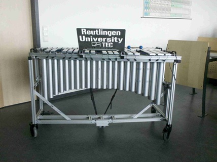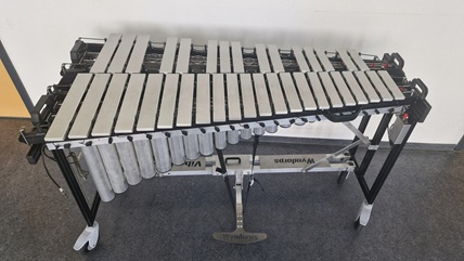The base frame, including the pedal unit, can be pushed together similarly to an accordion to save space during transport. The playing table is divided into the front and rear rows of bars, whereby the sound bars can remain permanently secured to the support frame in an alternating arrangement thanks to special bar posts, but can still be easily removed if necessary. The support frames also contain the socket strips for connecting the pickups. The rear support frame also contains the complete damping unit, including the springs.