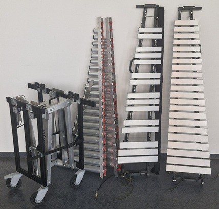 The accordion frame was developed with the aim of allowing the sound bars with pickups to remain permanently wired to the respective support frame, thus eliminating the need to disconnect/connect the pickups contacts when removing or attaching the sound bars for transport.