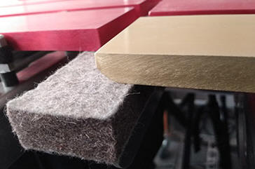 Aufgelegt auf den Rahmen zeigte sich dann, dass durch die Bearbeitung an den Kanten die Pedaldämpfung im Vergleich zu den Nachbarplatten uneinheitlich geworden war. Trotzdem war diese Platte ein großer Erfolg, da das konkrete Klangergebnis perfekt zu unserer ersten Simualtion gepasst hat.