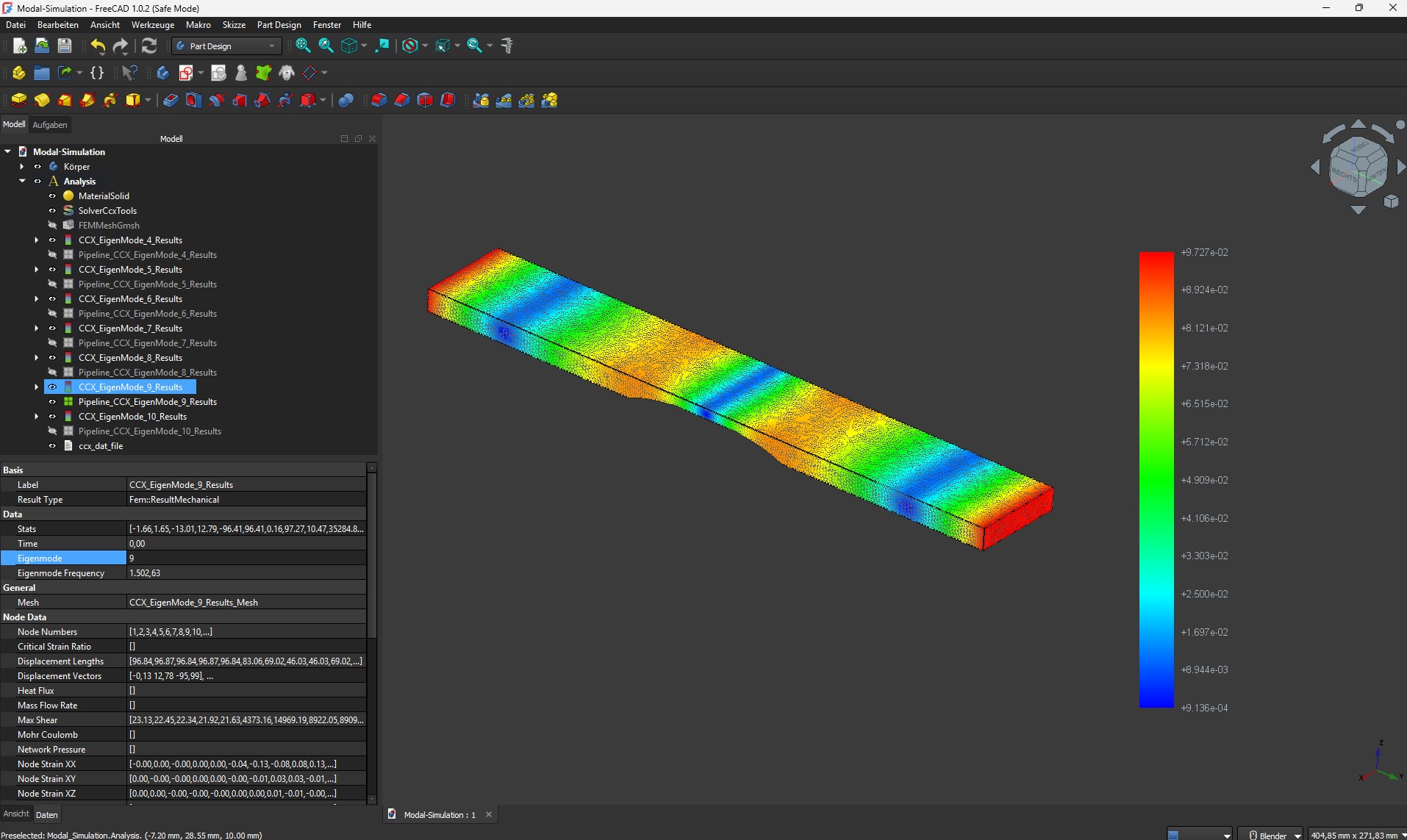 Das Ergebnis einer FreeCAD-Modal-Simulation sieht dann so aus: