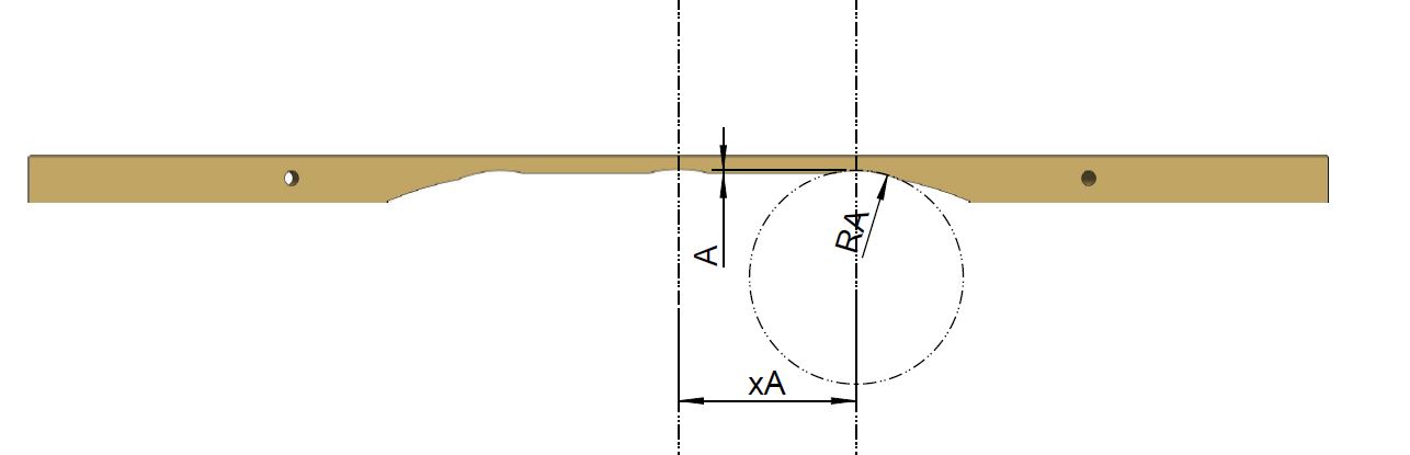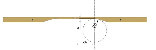 Im zweiten Schritt werden die symmetrisch liegenden Stimmpunkte A, beschrieben ducrh die Tiefe A, die Lage xA und den Radius RA definiert.