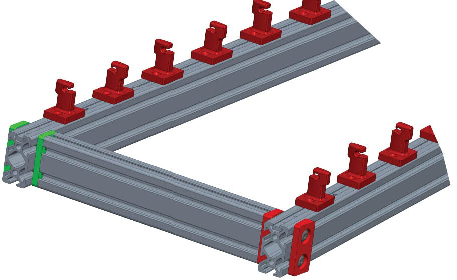 - Die 3D-gedruckten Plattenhalter mit integrierter Mutter sind sehr gut für Rohr oder Blechrahmen geeignet, aber der unterbrochene Druck zum Einlegen der Muttern ist recht aufwendig.