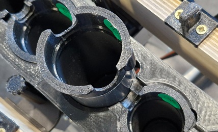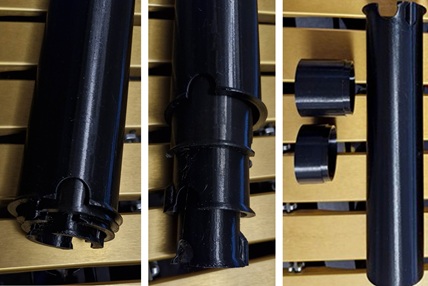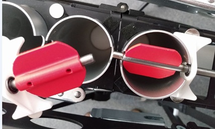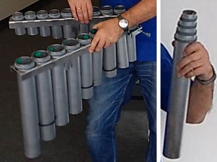 For resonance tubes made of aluminum or PVC, a maximum of three tubes can usually be nested inside each other due to the gradation of the tube diameters. A 3D-printed head piece must then be glued to each tube for positioning and mounting in the tube holder, or alternative fixing methods (features for aluminum) must be used.