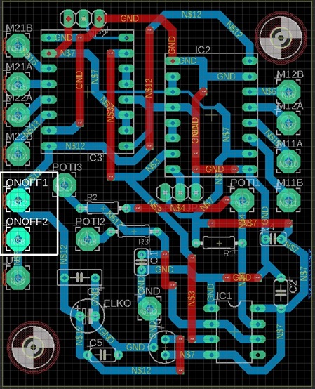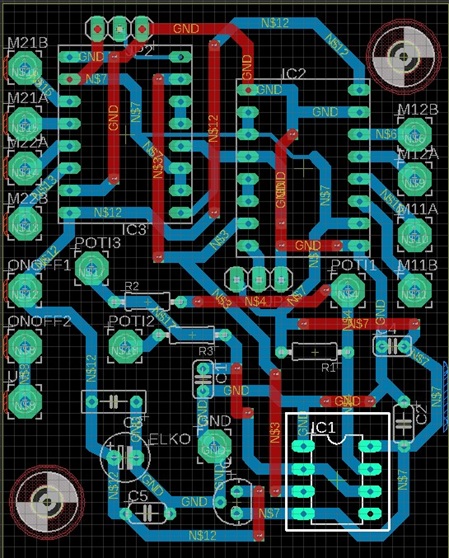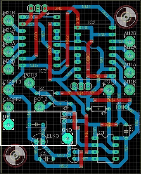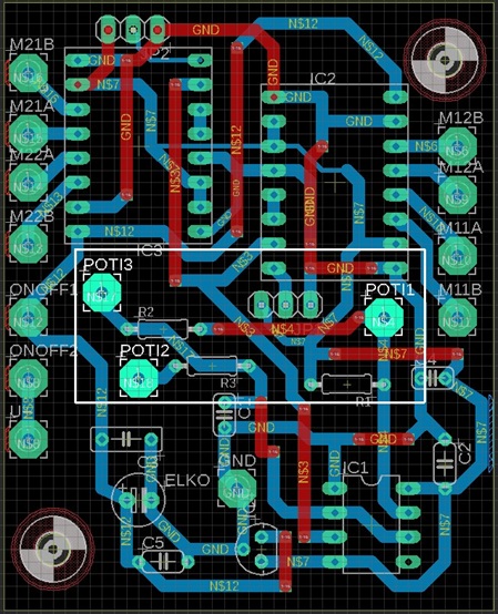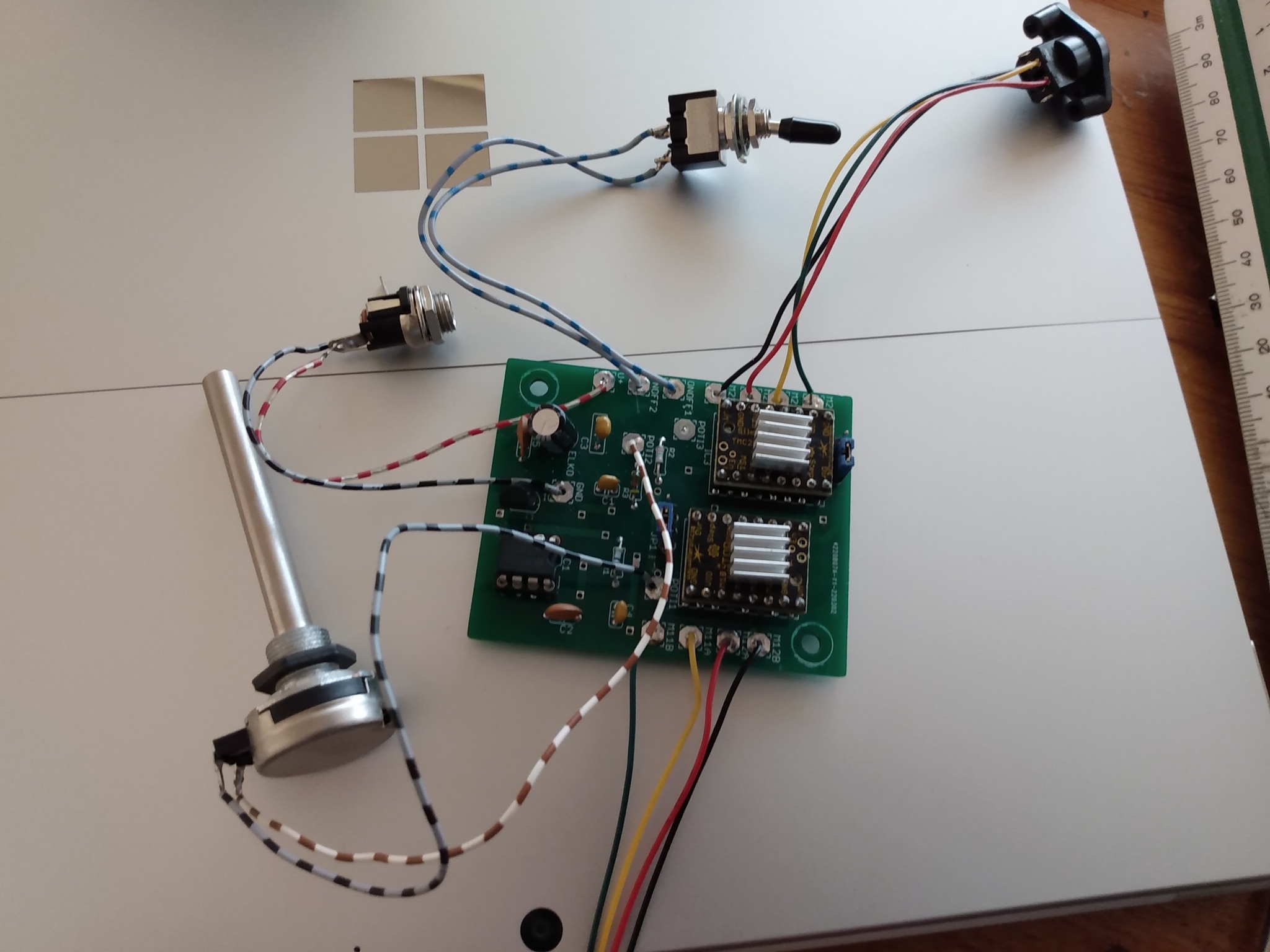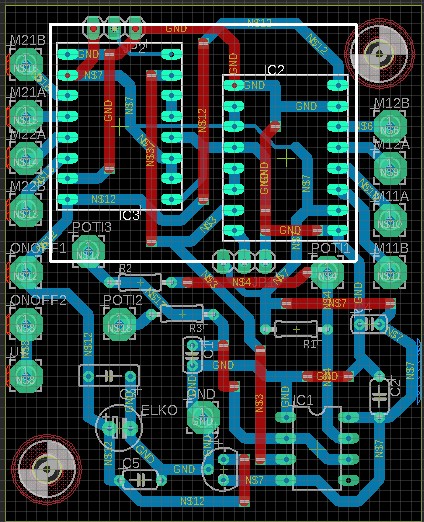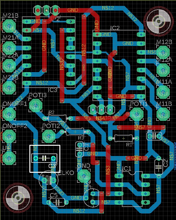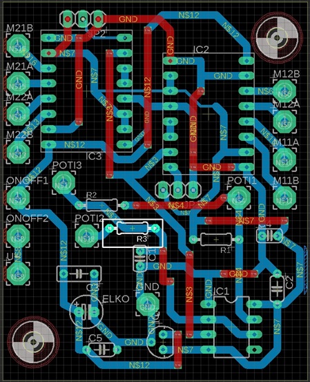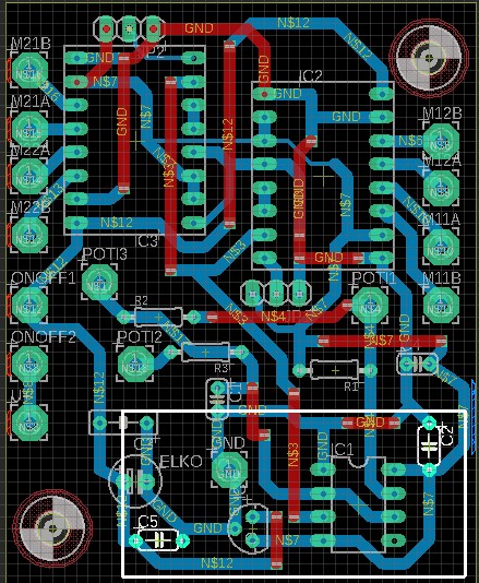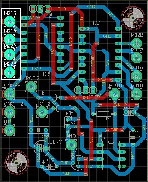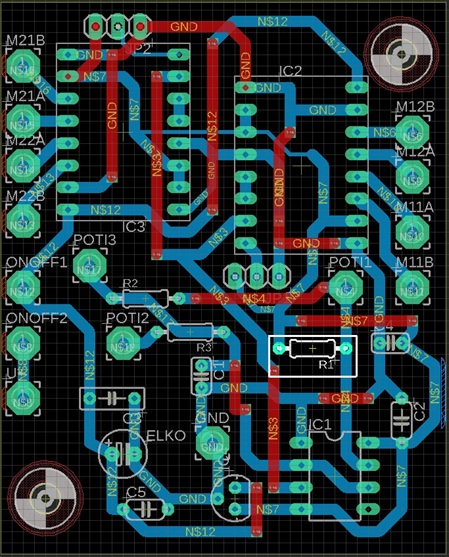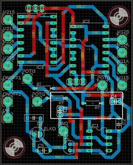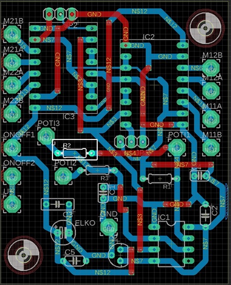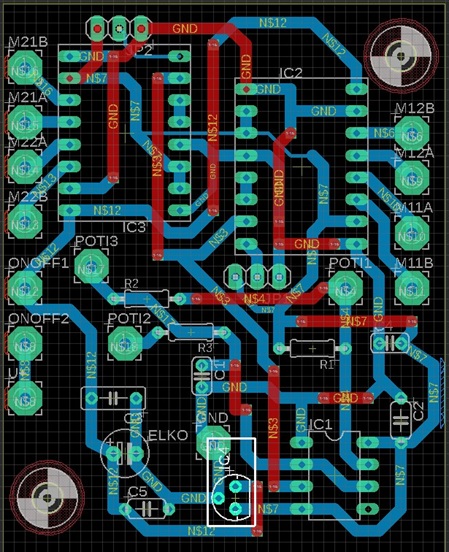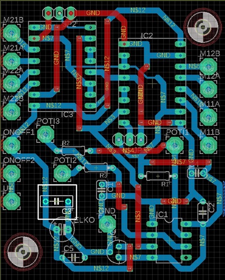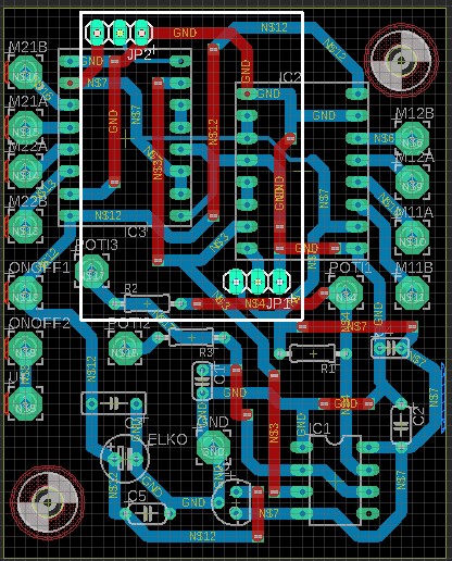 Meine Steuerung ist in der Lage zwei Schrittmotoren gleichzeitig synchron anzusteuern, da ich für meine Faltrahmen je einen Motor pro Resonanzrohrreihe nutze. Über die beiden Jumper kann für jeden Motor die Drehrichtung definiert werden.